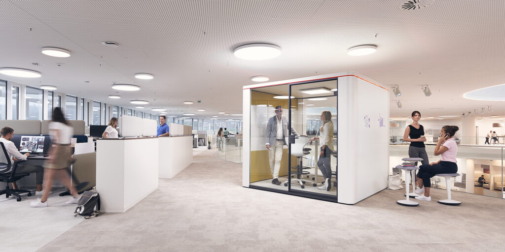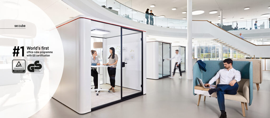 Gli ambienti open space o di grandi dimensioni sono utili per l’efficienza delle superfici. Ma che fare quando si deve lavorare in concentrazione? In questo caso, ci vuole uno spazio che Sedus se:cube crea in pochissimo tempo. Il nuovo Office Cube di Sedus definisce nuovi standard in termini di montaggio, fonoassorbenza e atmosfera e può accogliere fino a otto persone, che possono utilizzarlo per ritirarsi in tranquillità, svolgere piccole riunioni o godersi un momento di relax.